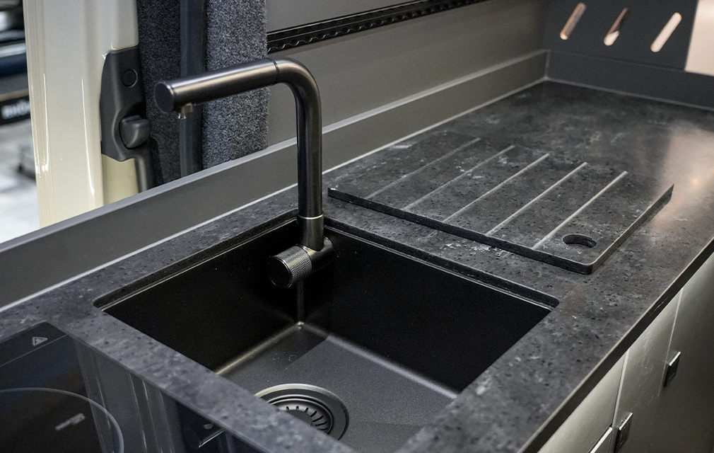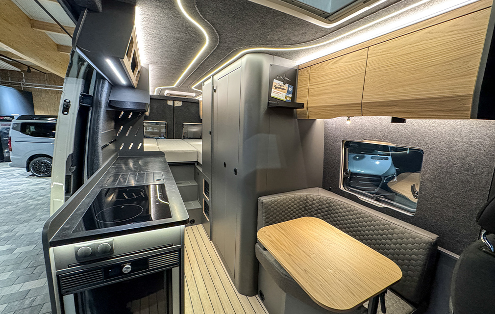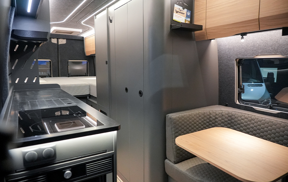 Der Rhön Camp THE SAVAGE – Unser Platzwunder in der 7 Meter Sprinter Klasse. Mit bis zu 4 Sitz- und Schlafplätzen und gigantisch viel Stauraum.
